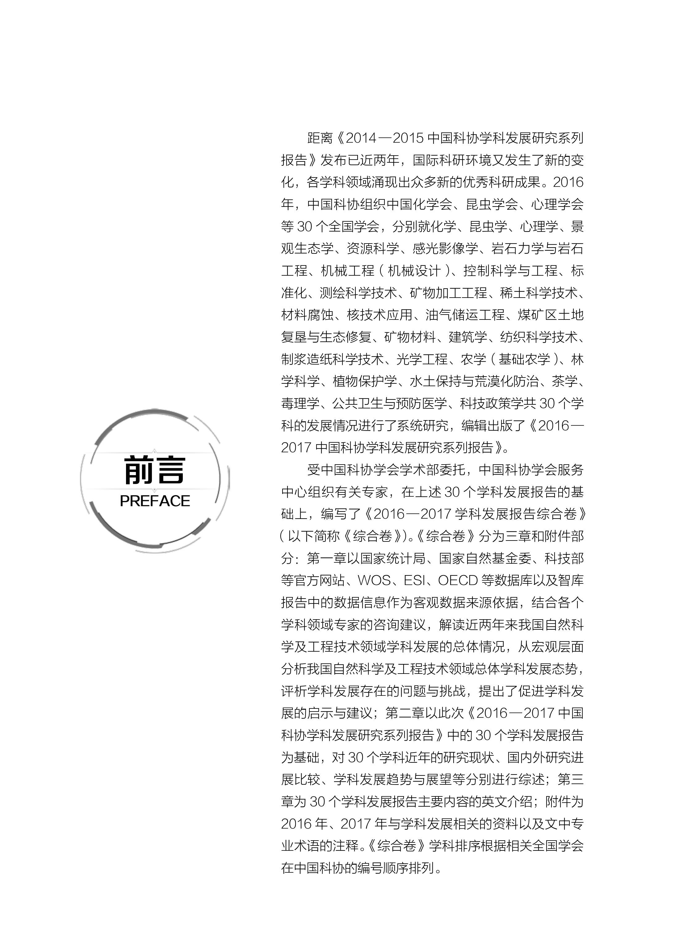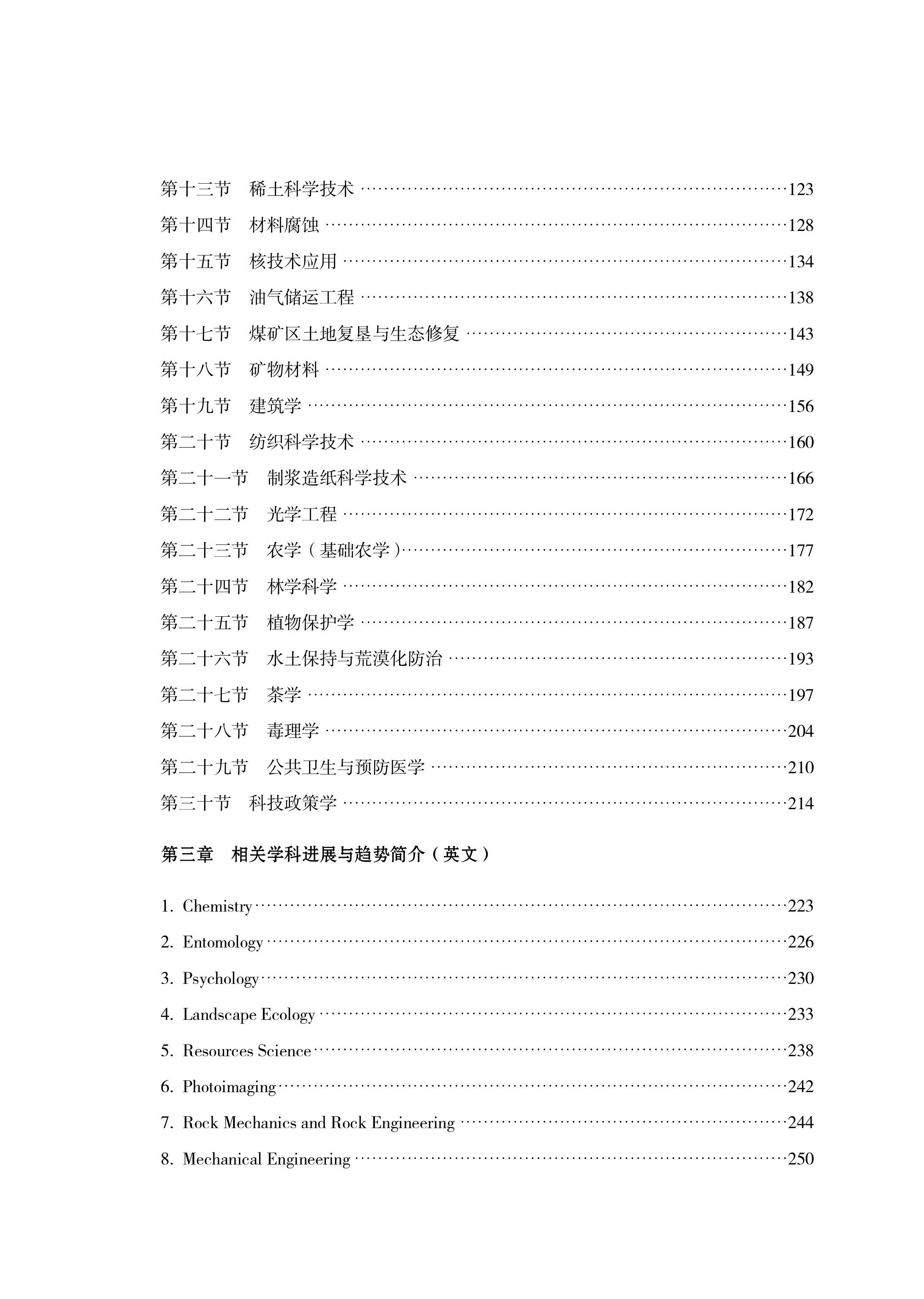 本书涵盖各学科发展成果与动态,动态显示:我国在量子通讯、天文学、生命科学、物理、超级计算机等领域处于并跑甚至 态势,脑科学、物理学、数学、先进核能、遗传学等诸多学科领域研究取得了丰硕成果与深远影响,面向深海、深地、深空、深蓝领域的重大研究以“顶天立地”之态服务国家重大需求,医学、农业、计算机、电子信息、材料等诸多学科领域的研究获得了具有现实意义的创举。在这些喜人成绩的背后,我们仍然需要意识到诸多问题,如基础研究经费严重不足且投入渠道单一,学科发展前瞻性部署尚需加强,科研环境与管理体制机制依然制约着科研创新,学科在区域、机构、学科之间发展不平衡,学科平台建设重复且缺少统筹规划与监管,学科评价体系、人才评价体系不够完善等等。因此,迫切需要优化学科研究环境、完善学科发展布局、提升学科支撑能力、加强学科队伍建设,以推动学科持续良性发展。